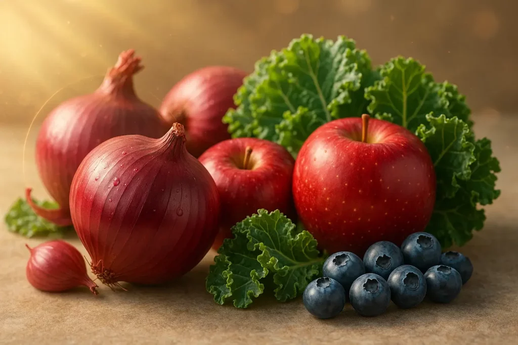 Studies show quercetin may help lower blood pressure, improve endothelial function, reduce LDL oxidation, and support healthy blood sugar metabolism.